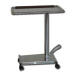 Chrome plated steel stand with stainless steel base and 5 plastic wheels, one with brake. Adjustable height from 60 to 95 cm.
