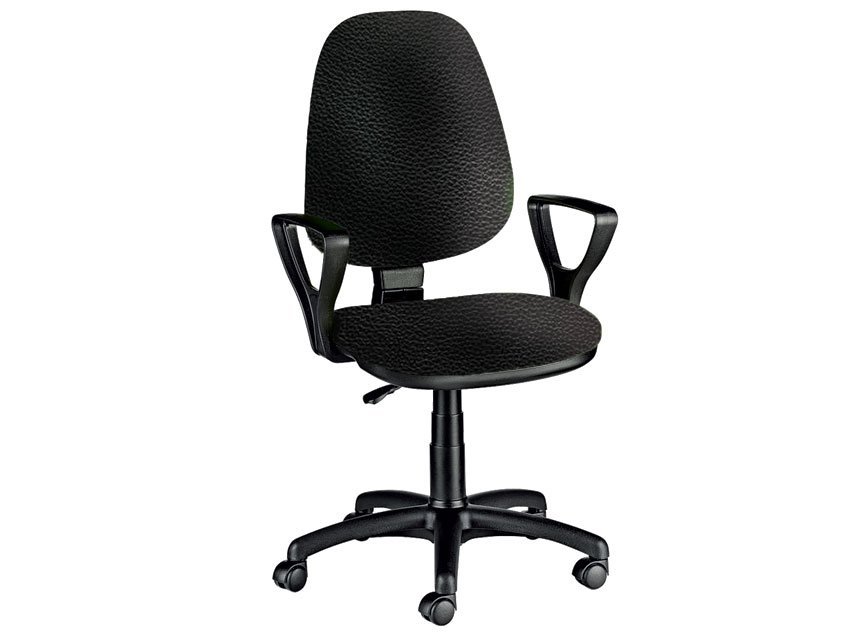 Functional office upholstered chair, with armrests and polypropylene swivel base, movable backrest with permanent contact.