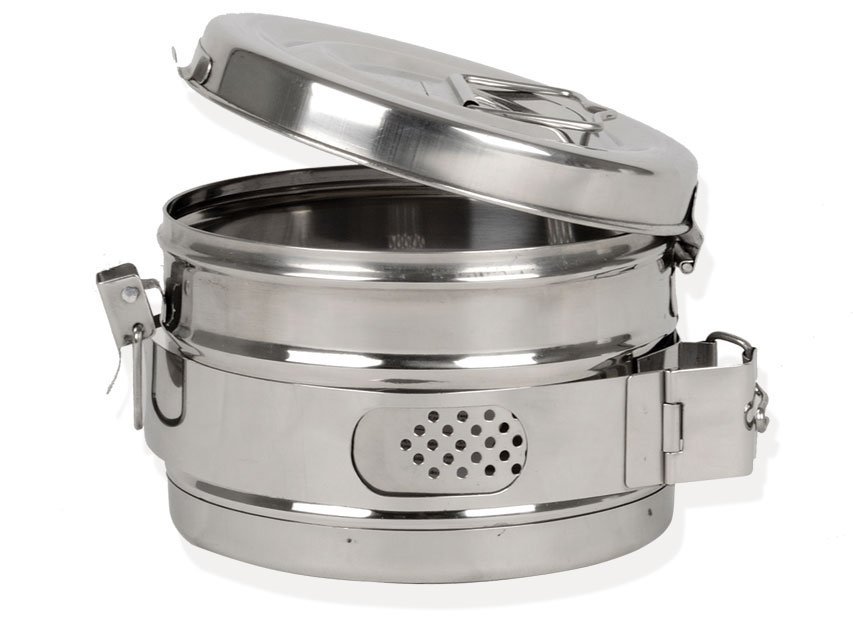 Drums have an effective closing lid with a clip lock system, a carrying handle, air vents system to allow steam to circulate freely during the sterilization cycle/process.