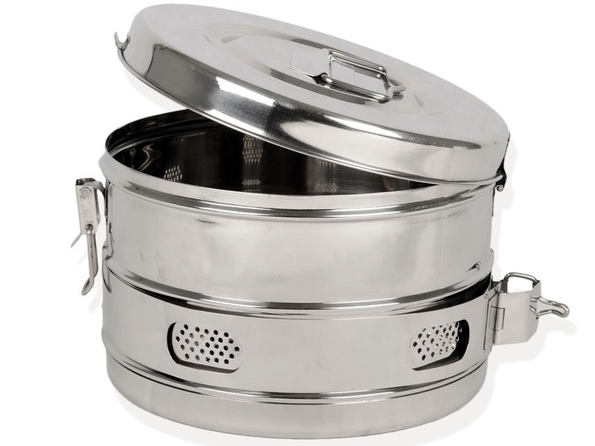 Drums have an effective closing lid with a clip lock system, a carrying handle, air vents system to allow steam to circulate freely during the sterilization cycle/process.