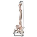 Fully flexible life size vertebral columns consisting of the occipital plate, cervical, thoracic and lumbar vertebrae, sacrum, coccyx, complete pelvis with symphysis, removable femur heads (only 40130,31,32). All models also feature representation of the vertebral arteries, spinal nerve branches, and a prolapsed L3-L4 intervertebral disc. On 40131 the left side of the skeleton shows the points of origin (red) and the point of insertion (blue) of the muscles. On 40131 and 40132 the sacral crest and coccyx are removable to show the sacral section of the spinal cord and associated nerve branches. On 40133 the various regions of the spinal column are colour coded for easy identification.